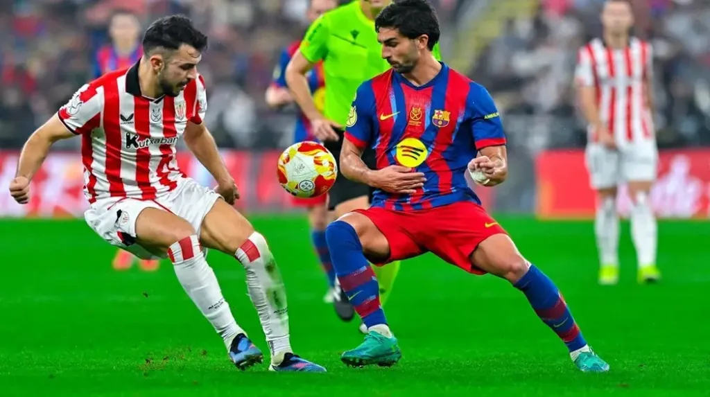 تأهل فريق برشلونة إلى نهائي كأس السوبر الإسباني بعد فوزه العريض على نظيره أتلتيك بلباو بخماسية نظيفة، في المواجهة التي أقيمت أمس على ملعب مدينة الملك عبدالله الرياضية في جدة، وسط حضور جماهيري تجاوز 50 ألف مشجع، وهو ما يعكس شعبية البطولة في المملكة وجاذبيتها الجماهيرية.